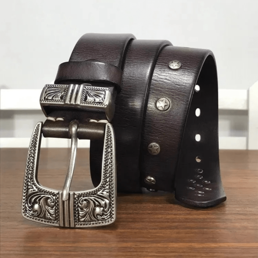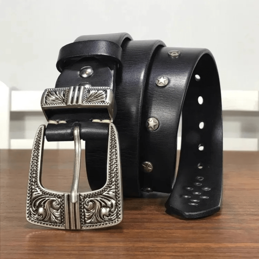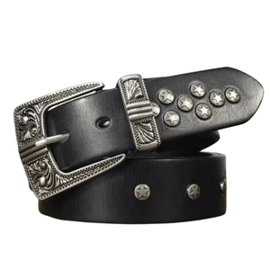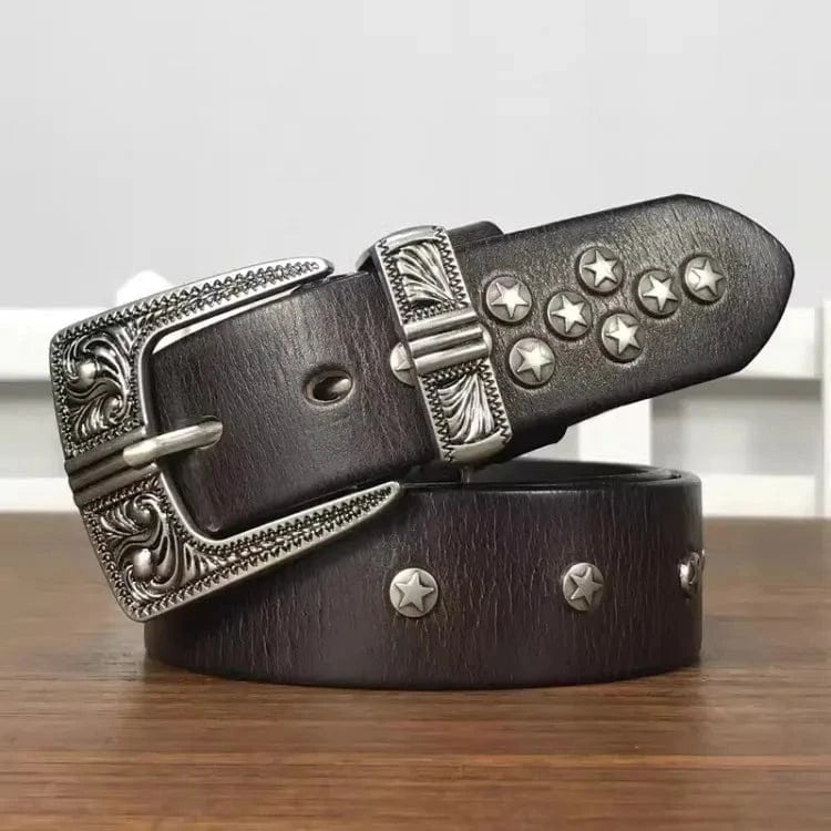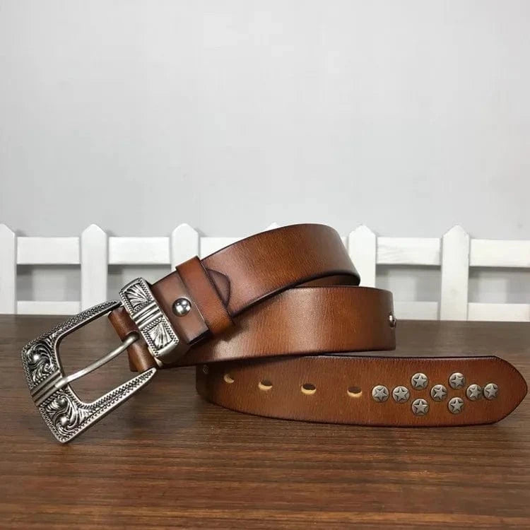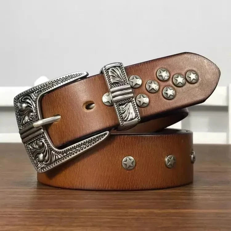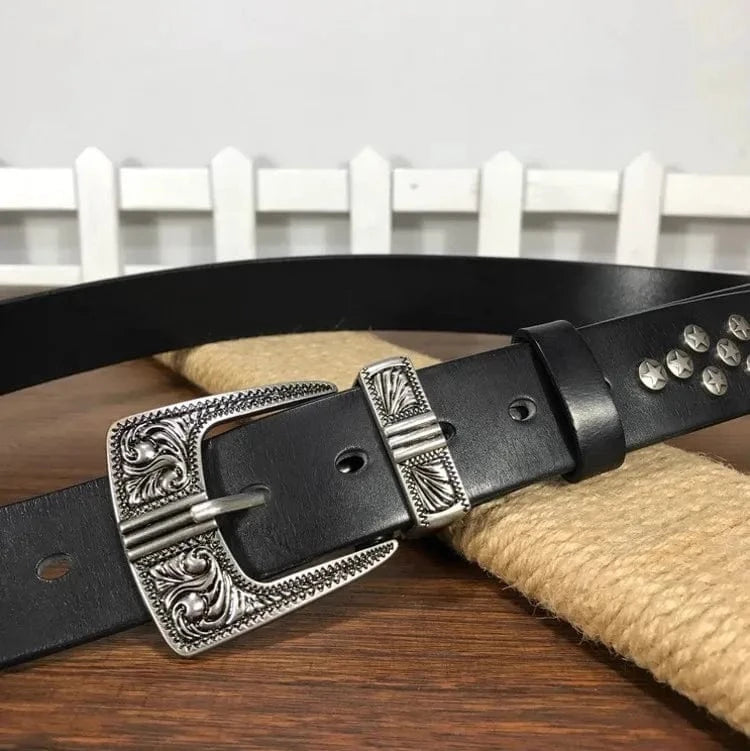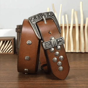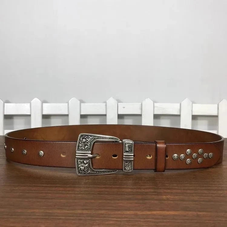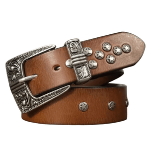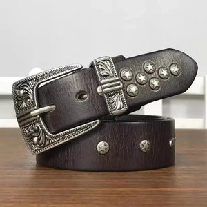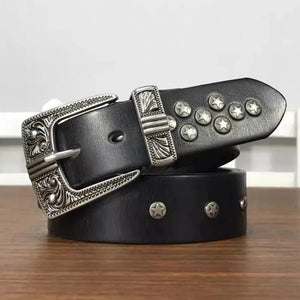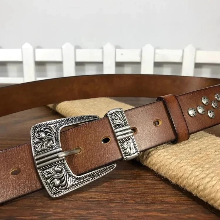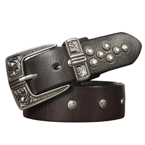 Westernbälte i äkta läder med stjärnnitar och vintage-spänne
