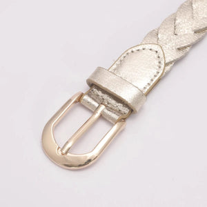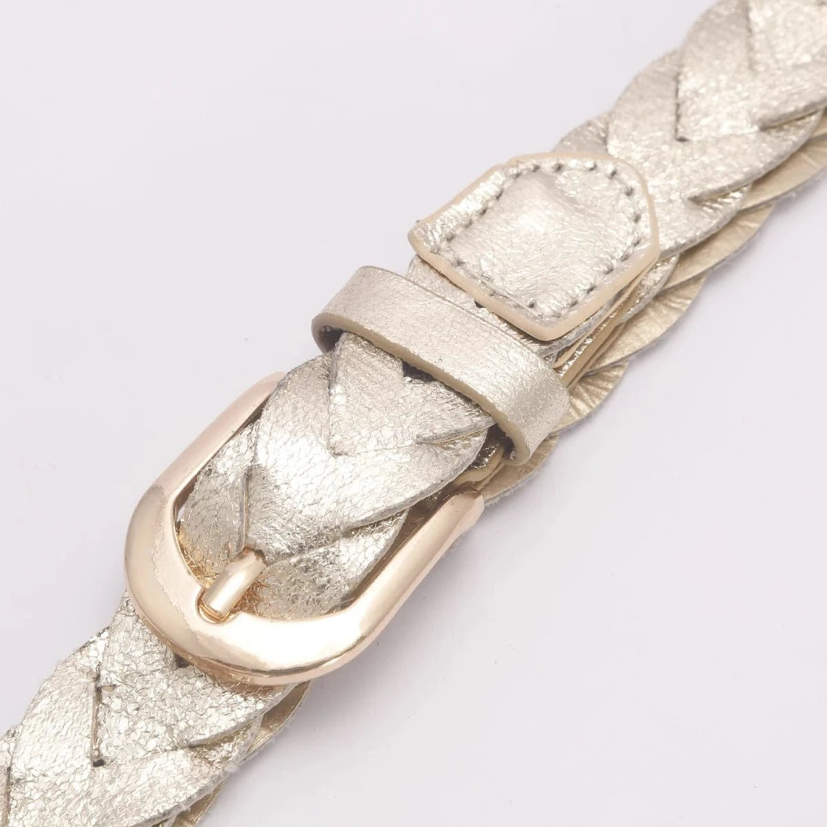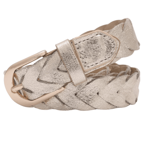 Det här flätade bältet i skimrande guldton ger din midja precis rätt accent. Smalt, mjukt och formbart – det passar perfekt till både klänningar och tunikor. Ett måste för dig som älskar stilrena detaljer med en touch av westerninspiration.