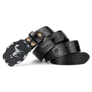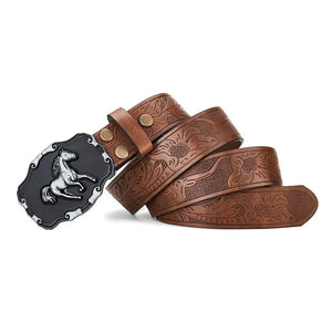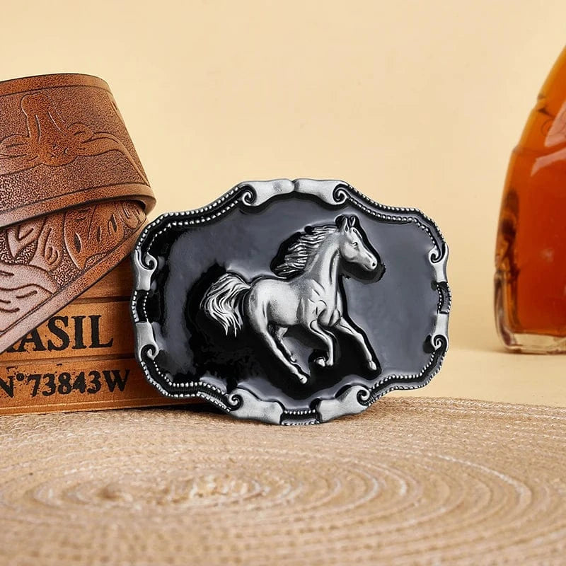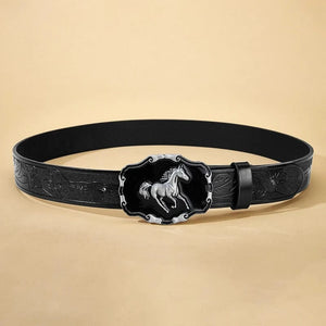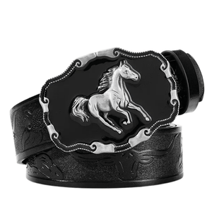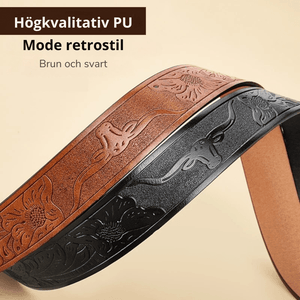 Ge din stil ett rejält lyft med detta iögonfallande westernbälte. Med ett svart eller brunt PU-läderband, ett storslaget hästspänne i metall och blommigt präglat mönster är det den perfekta accessoaren för dig som älskar äventyr, uttryck och autentisk stil.
