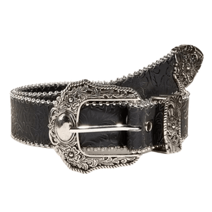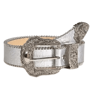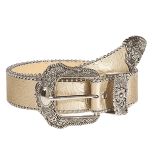 Westernbälte i läder för kvinnor med graverat metallspänne