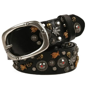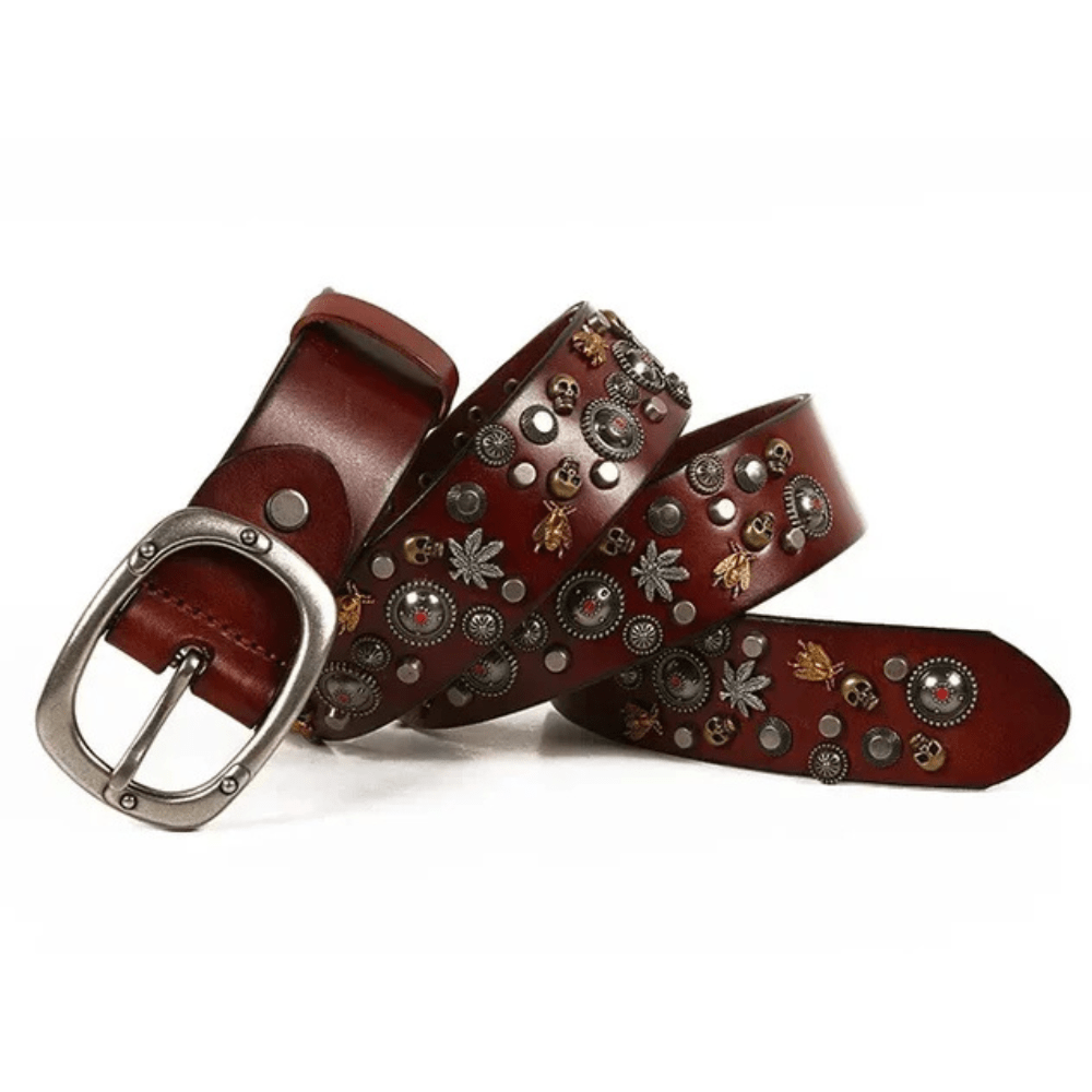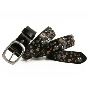 Ett distinkt val för dig som älskar uttrycksfull stil – mönstrade nitar ger bältet en rebellisk charm. -