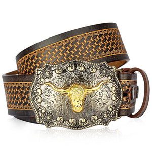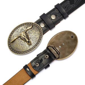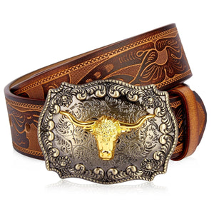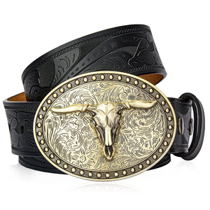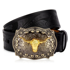 Westernbälte i Präglat Läder med Guldfärgat Longhorn-spänne