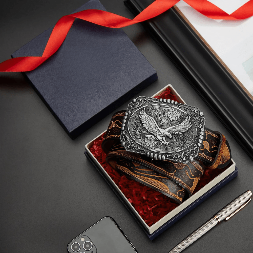 Den majestätiska örnen på spännet är inte bara dekorativ – den är ett tydligt stiluttryck. -