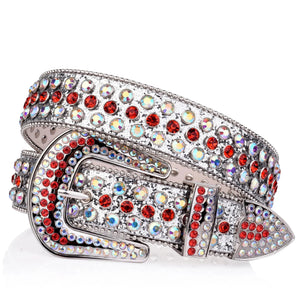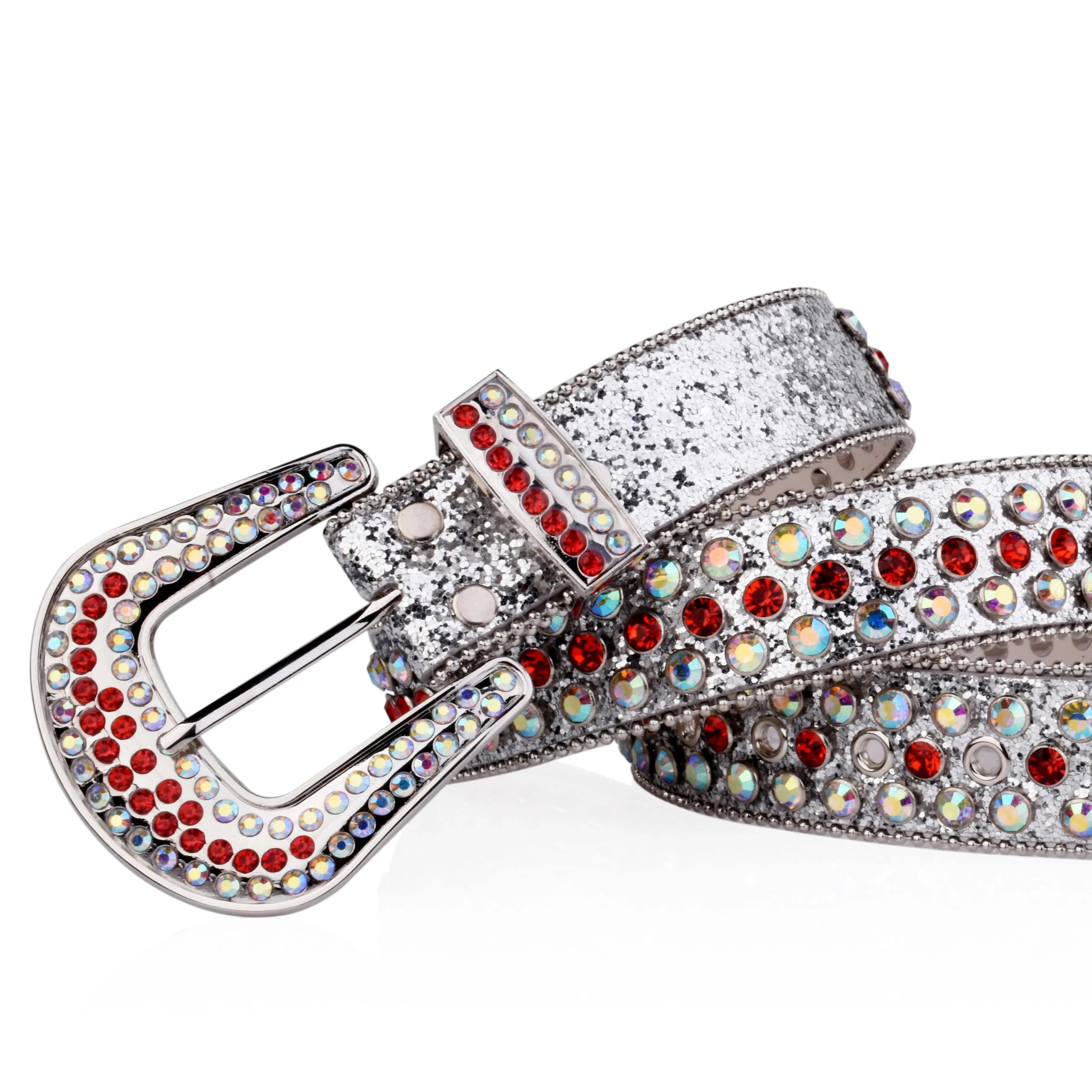 Med sprakande röda kristaller och regnbågsskimrande stenar är detta bälte allt annat än diskret. Det här är bältet för dig som älskar att synas – oavsett om du bär det till dina jeans, en oversize jacka eller en tight klänning. Stilen är western möter glam rock, och resultatet är oemotståndligt.