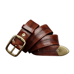 Handgjorda tekniker som karvning och prägling ger varje bälte sitt unika uttryck. -