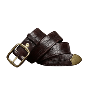 Westernbälte i vegetabilgarvat läder med antik mässingsspänne