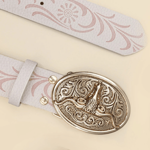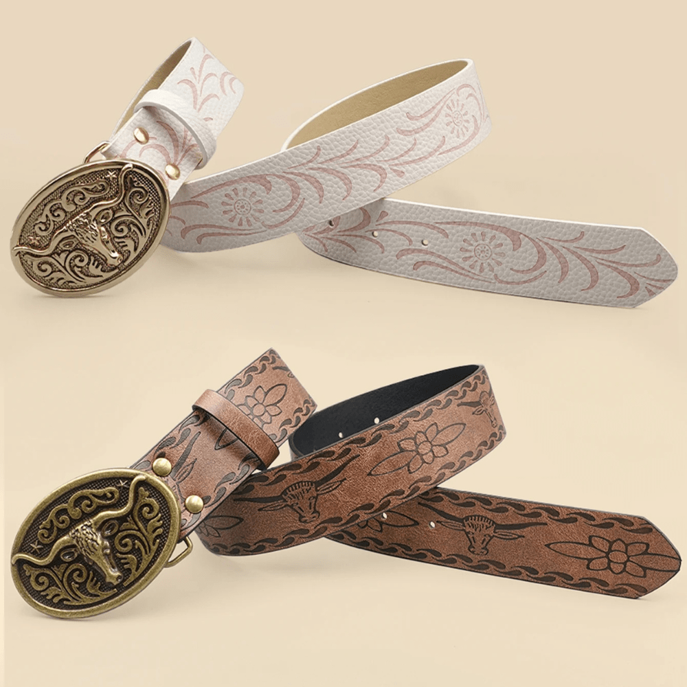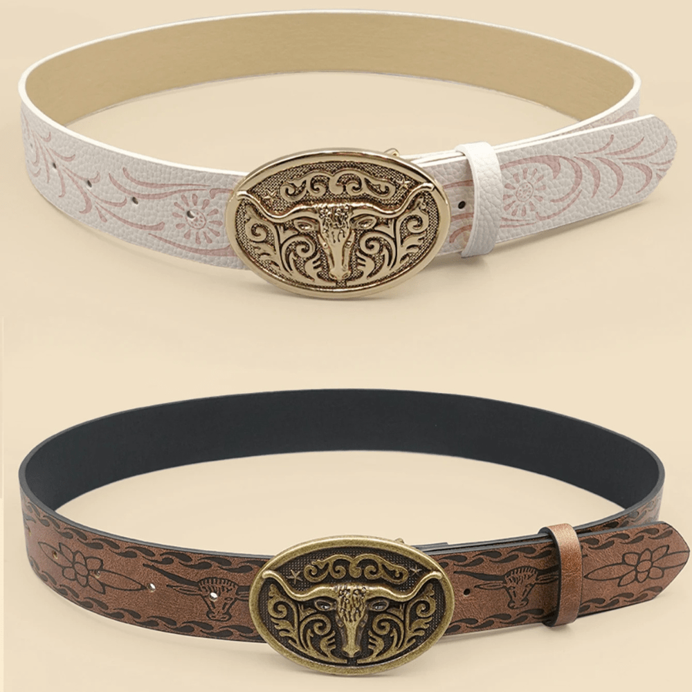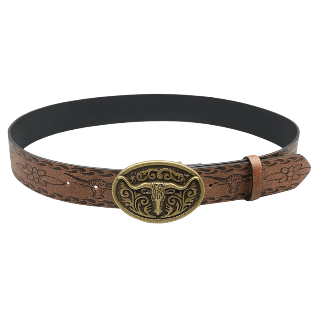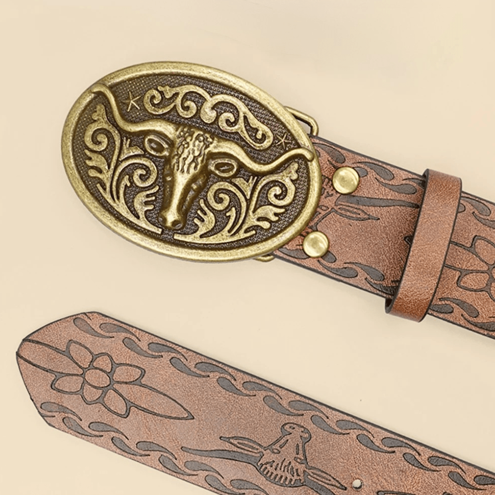 Sätt pricken över i på din westerninspirerade stil med detta sofistikerade westernbälte i broderat konstläder. Med sitt detaljrika oxhuvudsspänne och boho-inspirerade prägel är det ett statement i både vardag och helg.