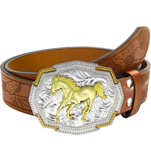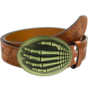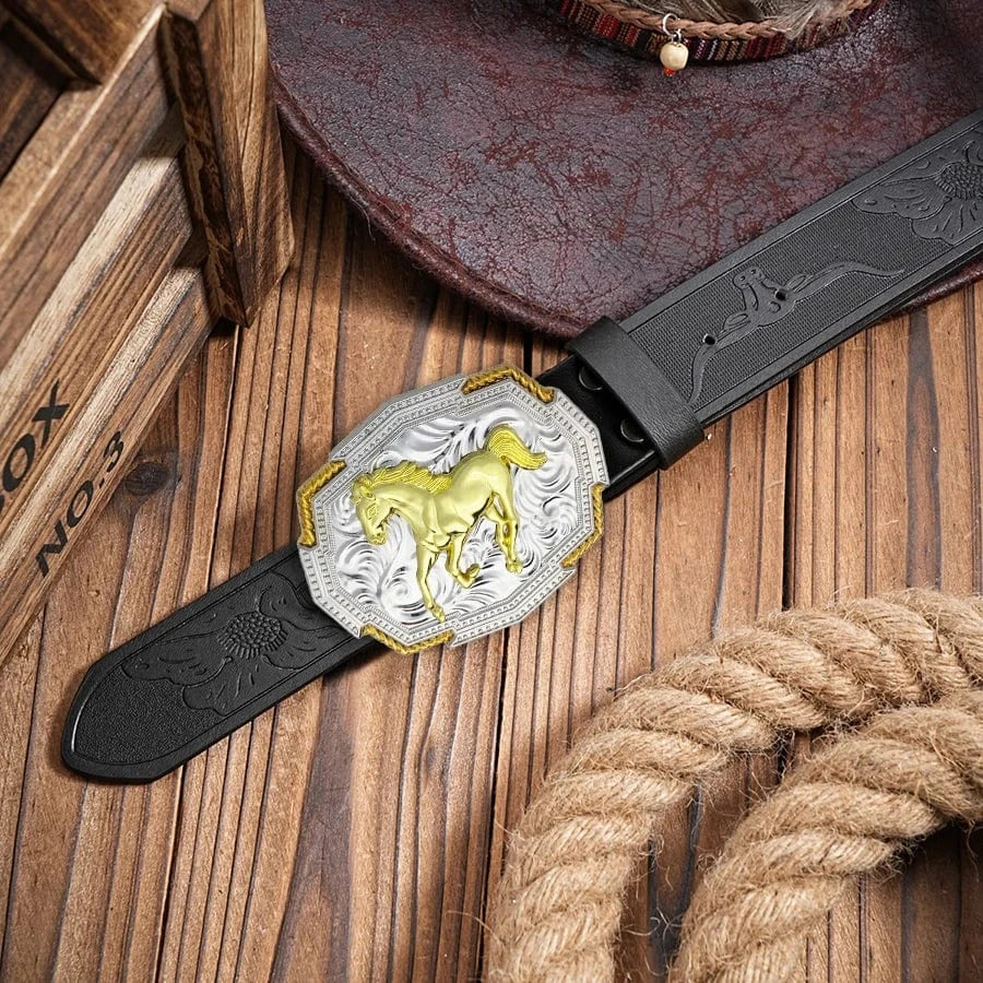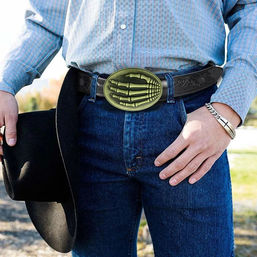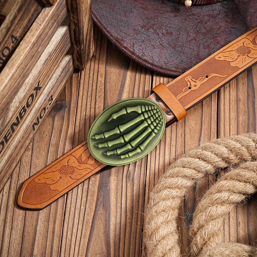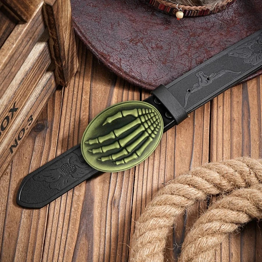 Det här westernbältet är mer än ett tillbehör – det är en tydlig symbol för självsäker attityd. Med ett detaljrikt spänne i relief – antingen i form av en springande häst eller ett djärvt skelettmotiv – blir varje outfit en berättelse om kraft, frihet och personlig stil.