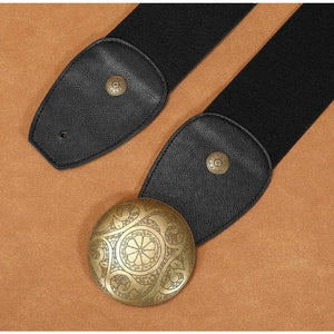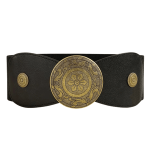 Det här breda westernbältet kombinerar stretchig komfort med klassisk design. Med en dekorativ antik guldfärgad spänne och kraftig elastik ger det din midja en markerad siluett – oavsett om du bär klänning, kavaj eller blus.