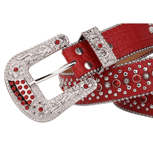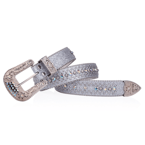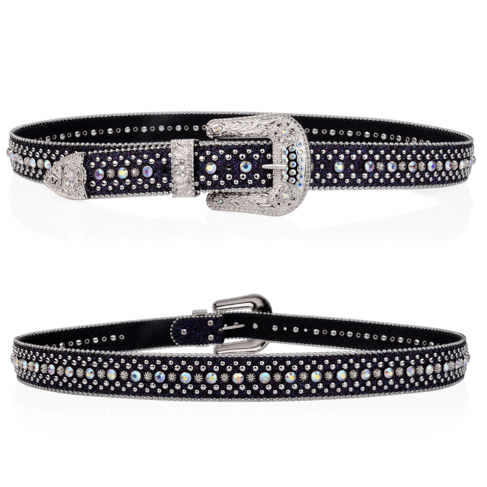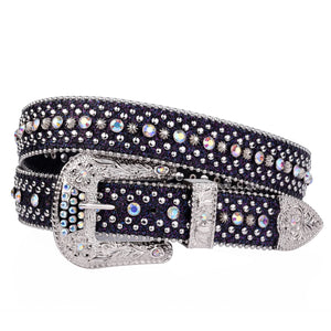 Älskar du att sticka ut och visa din personlighet? Det här bältet i klassisk westernstil är prytt med glittrande strasstenar och dekorativa nitar – en kaxig accessoar som lyfter allt från jeans till midiklänningar.