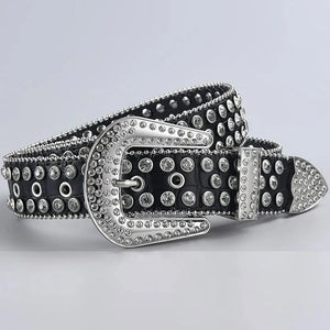 Det här är inget vanligt bälte – det är ett statement. Med bländande stenar, färgstarka nitar och ett distinkt formspråk ger detta westernbälte din look ett lyft, oavsett om du bär jeans eller en klänning.
