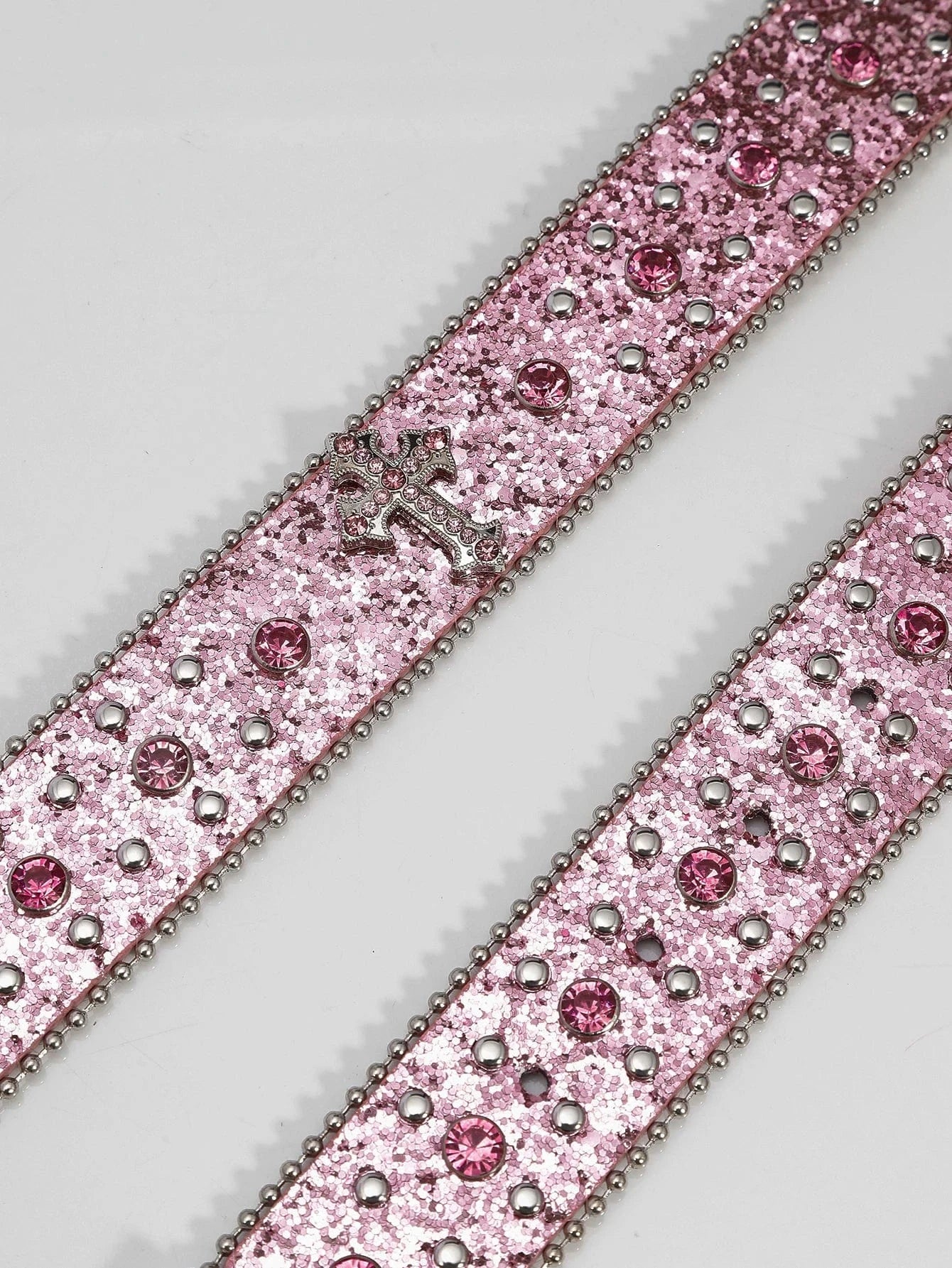 Det här bältet tar plats – precis som du. Med ett hav av rosa strasstenar, korsdetaljer i silver och ett gnistrande spänne i westernstil är det designat för dig som älskar att glänsa. En unik accessoar som förvandlar varje look till en show.