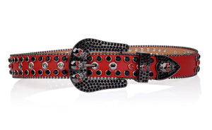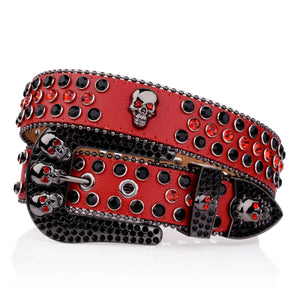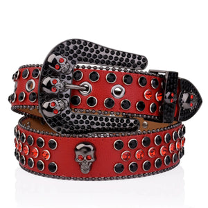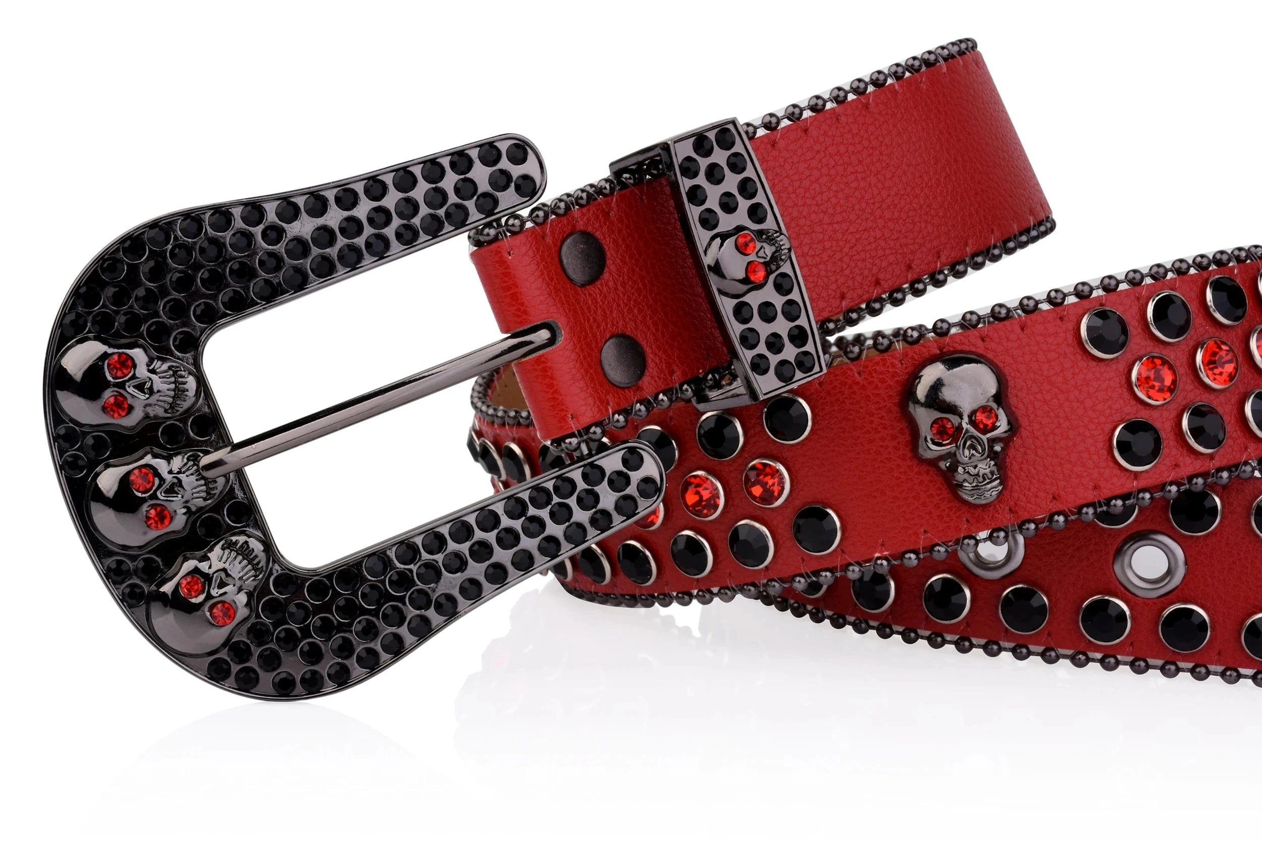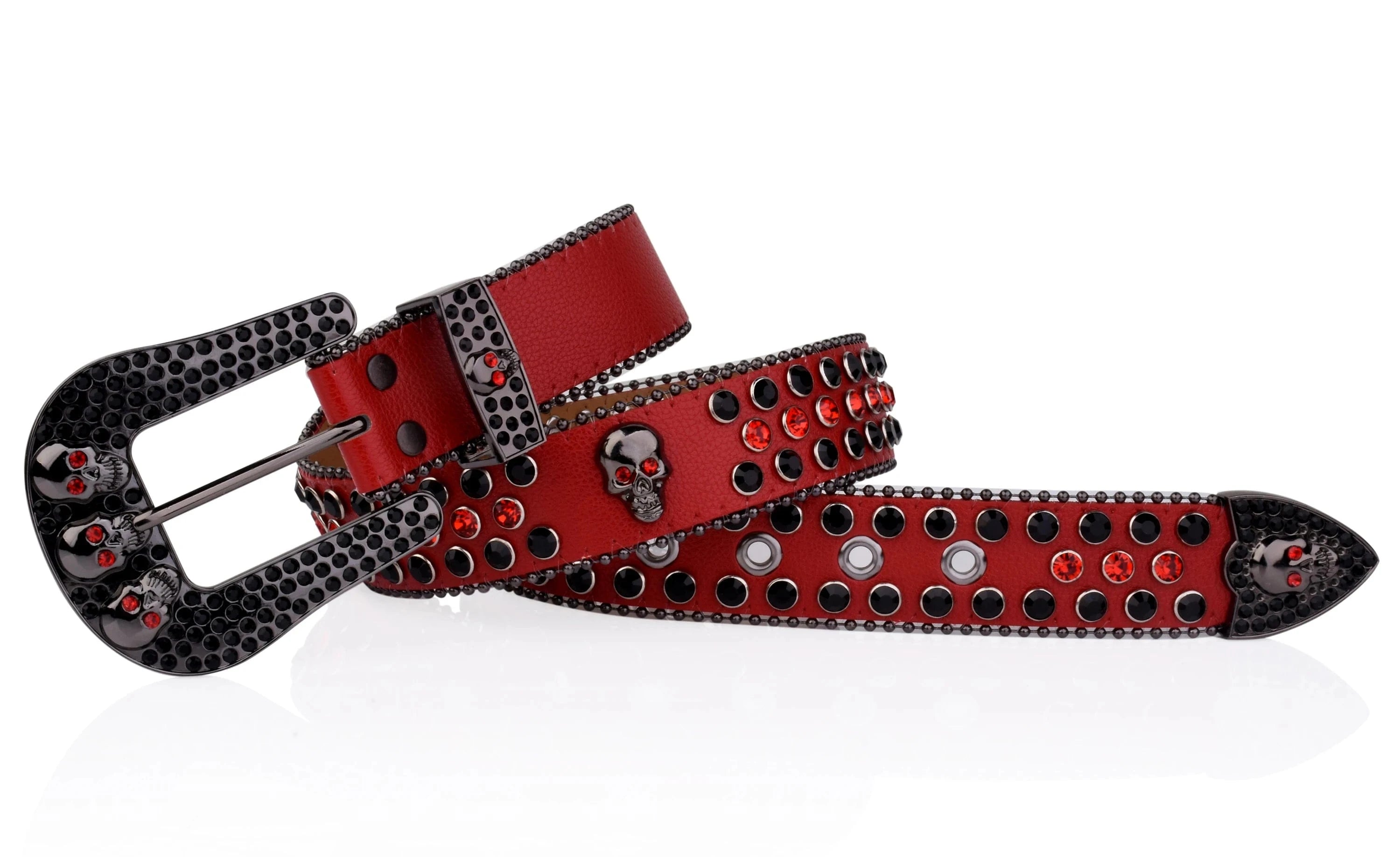 Westernbälte Rött med Dödskallar, Nitar och Strass