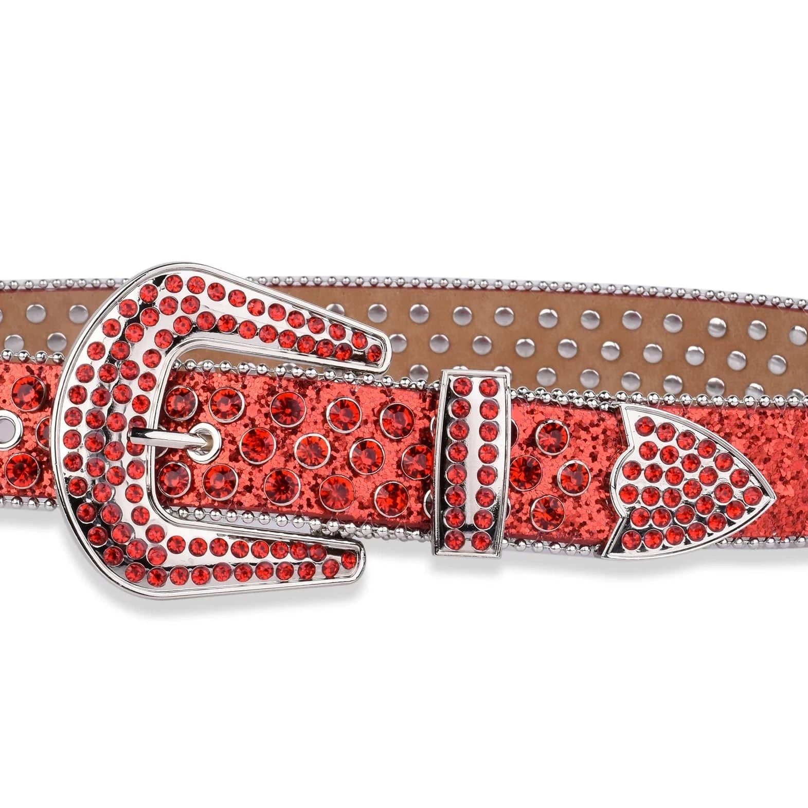 Det här röda bältet är inte bara ett tillbehör – det är ett utropstecken. Glittrande kristaller, skinande PU-läder och ett dekorativt spänne gör detta till det ultimata accessoaret för dig som lever med passion och klär dig med karaktär. För cowgirls, punks, dansgolvsdrottningar och alla däremellan.