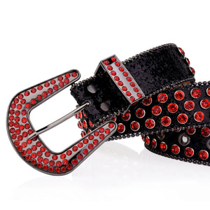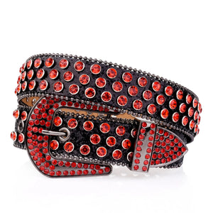Westernbälte Svart med Röda Strass