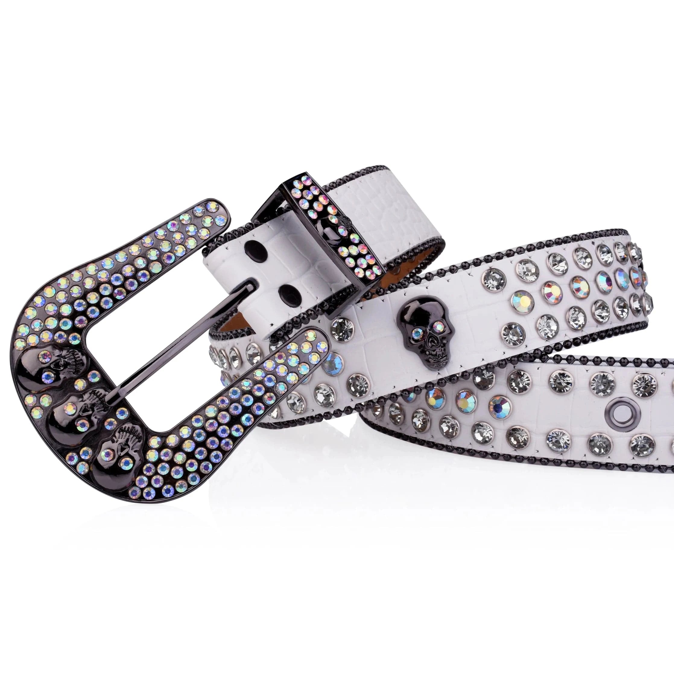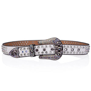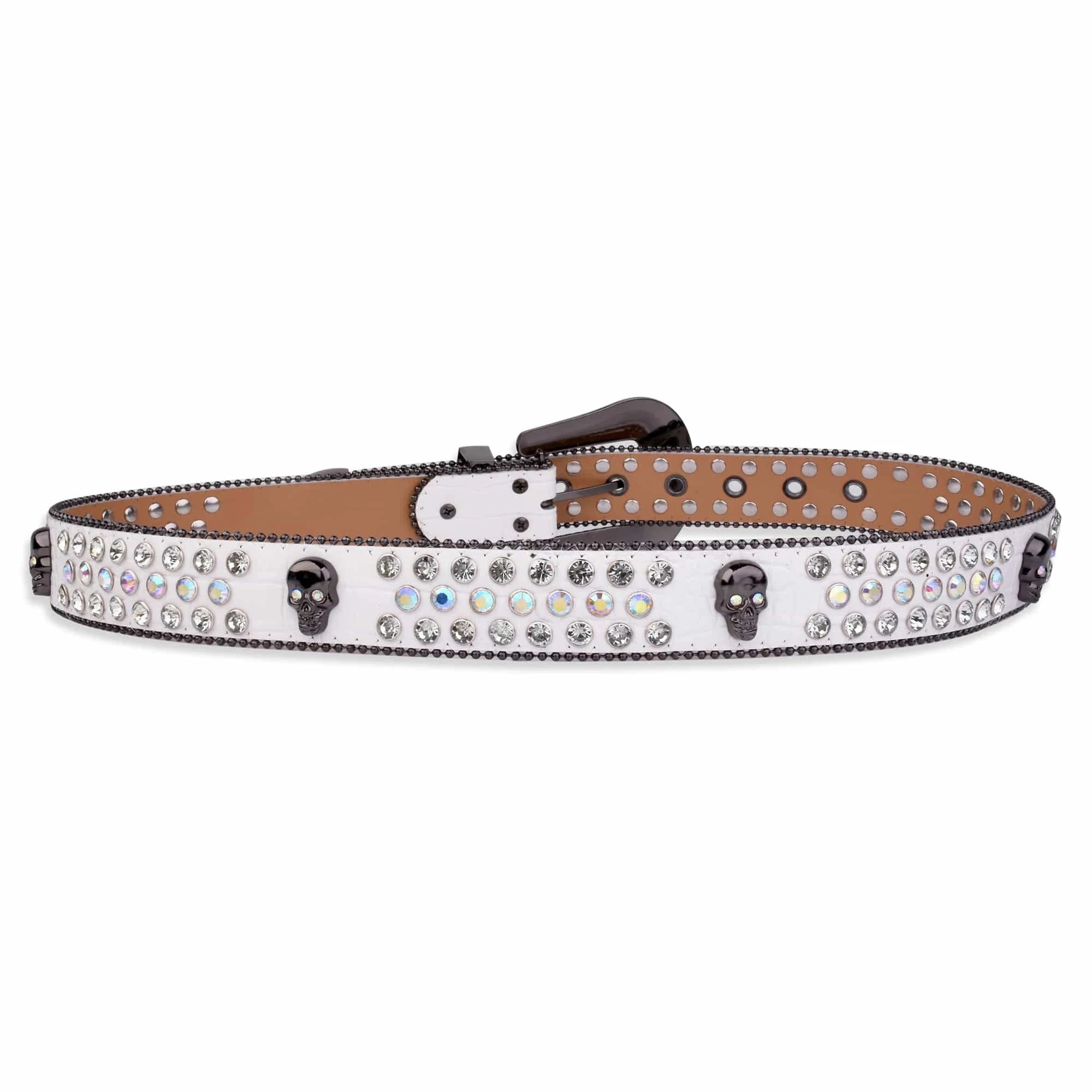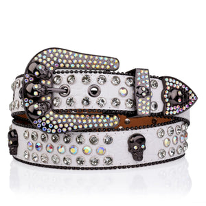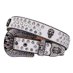 Westernbälte vitt strass med skull-spänne