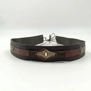 Detaljerat silverbeslag i mitten, flankerat av snörat konstläder, ger en autentisk känsla som lyfter varje hatt. -