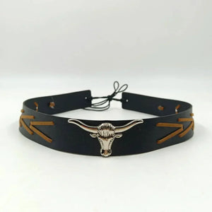 Letar du efter det lilla extra som tar din cowboyhatt till nästa nivå? Vårt exklusiva hattband i konstläder med silverfärgad longhorn-detalj kombinerar autentisk westernstil med en modern touch. Oavsett årstid eller tillfälle blir det här accessoaren en självklar del av din look.